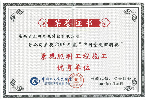 湖南省正陽光電科技有限公司是一家從事亮化工程及大型燈光藝術的設計、制作、安裝和維護于一體的專業化公司。公司資質齊全、管理嚴謹、技術先進、實力雄厚,取得了城市及道路照明工程專業承包壹級資質、照明工程設計專項甲級資質、機電工程施工總承包貳級資質、施工勞務等資質、國家高新技術企業、國家“重質量·守誠信”示范企業。